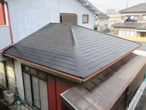 ■屋根:47.2㎡ – 下塗:SK強化シーラー – 中塗:プレミアムルーフSi – 上塗:プレミアムルーフSi